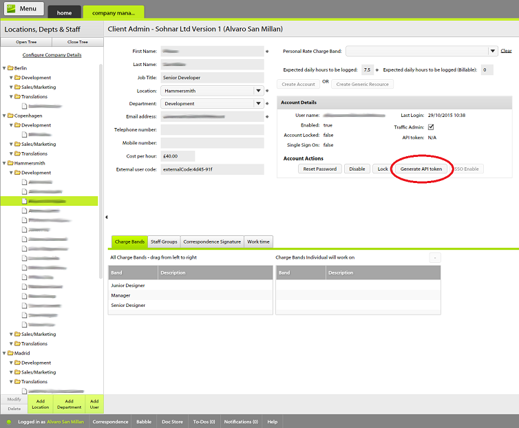 In order to generate an API token you need to open TrafficLIVE and navigate to Menu > admin > company management, click on OpenTree and search for your user, then click on Generate API token.