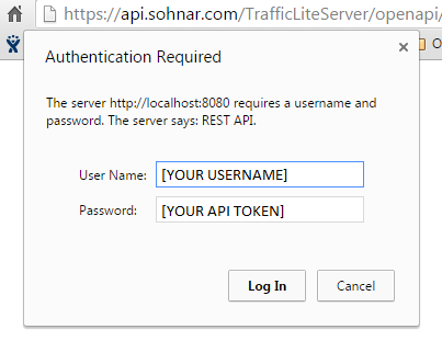 This can be demonstrated by opening a read endpoint in a simple web browser, where a http basic login dialog will be presented to the user.