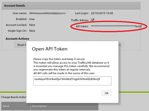 The API token is for one time, please copy the token and keep it secure. This will allow you access to the TrafficLIVE database so it is essential to regenerate it as a regular basics.