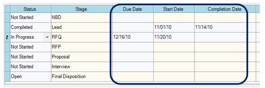 As your BD effort progresses, you update and track your progress as follows: