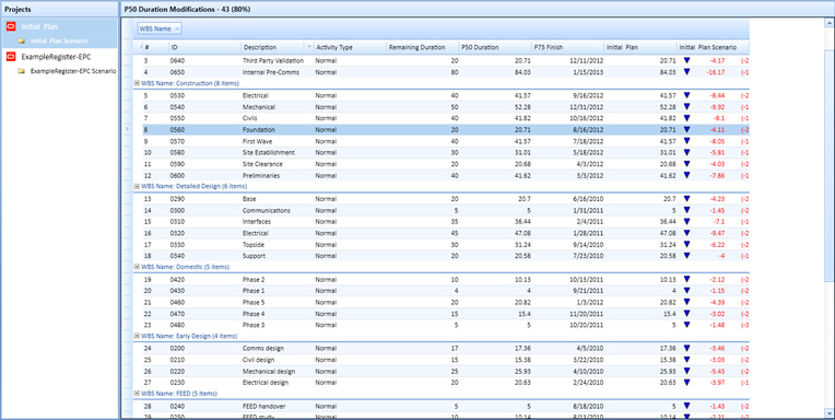 This is useful when you need to report differences in risk exposure such as P50 Durations between alternate scenarios.