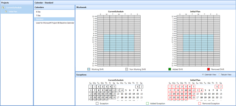 This includes changes to standard working/non-working time as well as changes to exceptions (for example, holidays). In addition, it can interrogate changes to calendar assignments on activities.