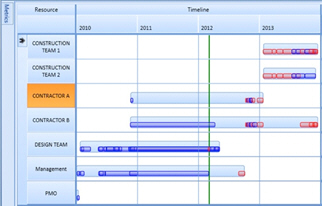 By creating a separate ribbon per resource, you are able to see who is working on which activities and, more importantly, when. Resource-ribbons provide an excellent insight into cost/schedule performance.