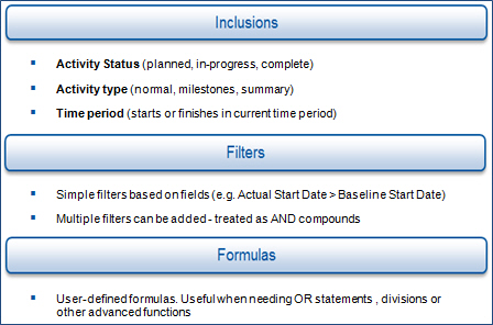 - Inclusions are a top-level set of filters to exclude specific activities based on type, status and time period.