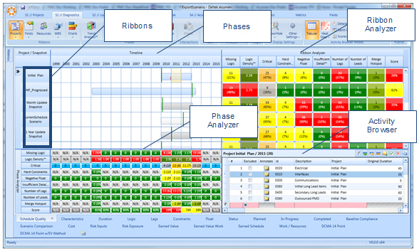 This tab includes ribbons and phases, an activity browser, and ribbon and phase analyzers.