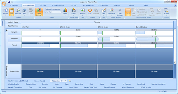 You can use the Acumen Fuse trend analysis feature to replace the traditional time-based phases in the diagnostics view with project snapshots.