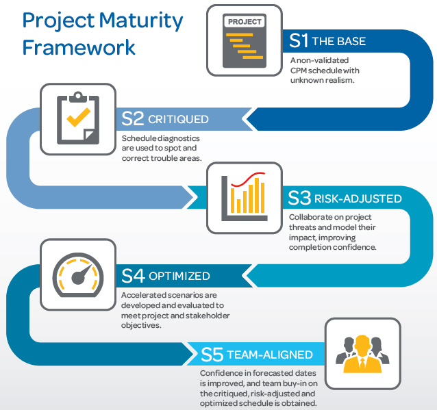 By pursuing the five levels of identified maturity, projects are able to establish schedules that are validated; have accounted for risk; have been optimized and mitigated in order to achieve a target and have team buy-in on the execution plan. Each level leads to a more successful and more achievable project plan.