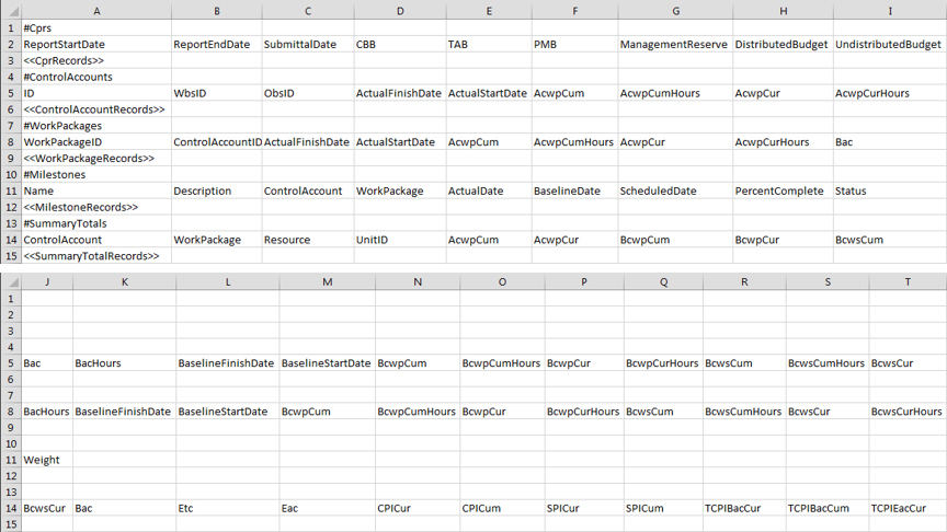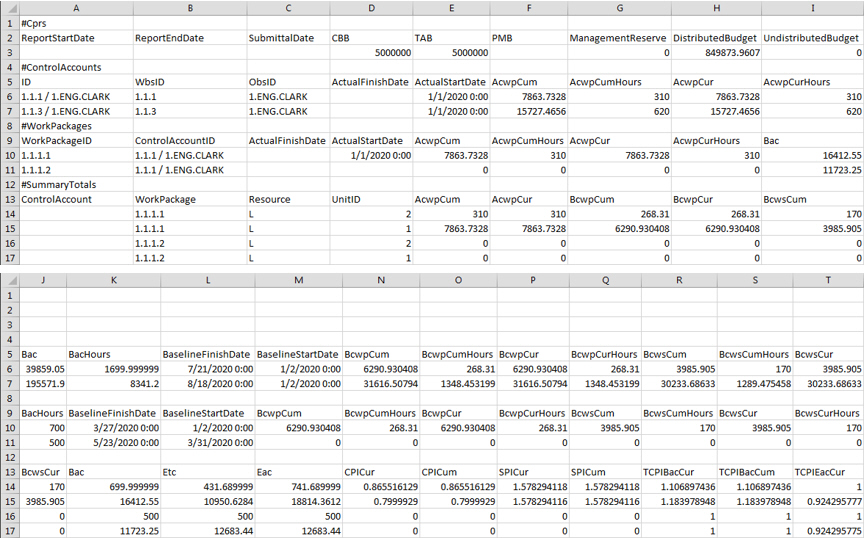 Cost Data CSV Structure
