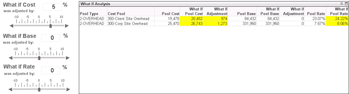• What If Pool Rate: What if pool cost / What if pool base