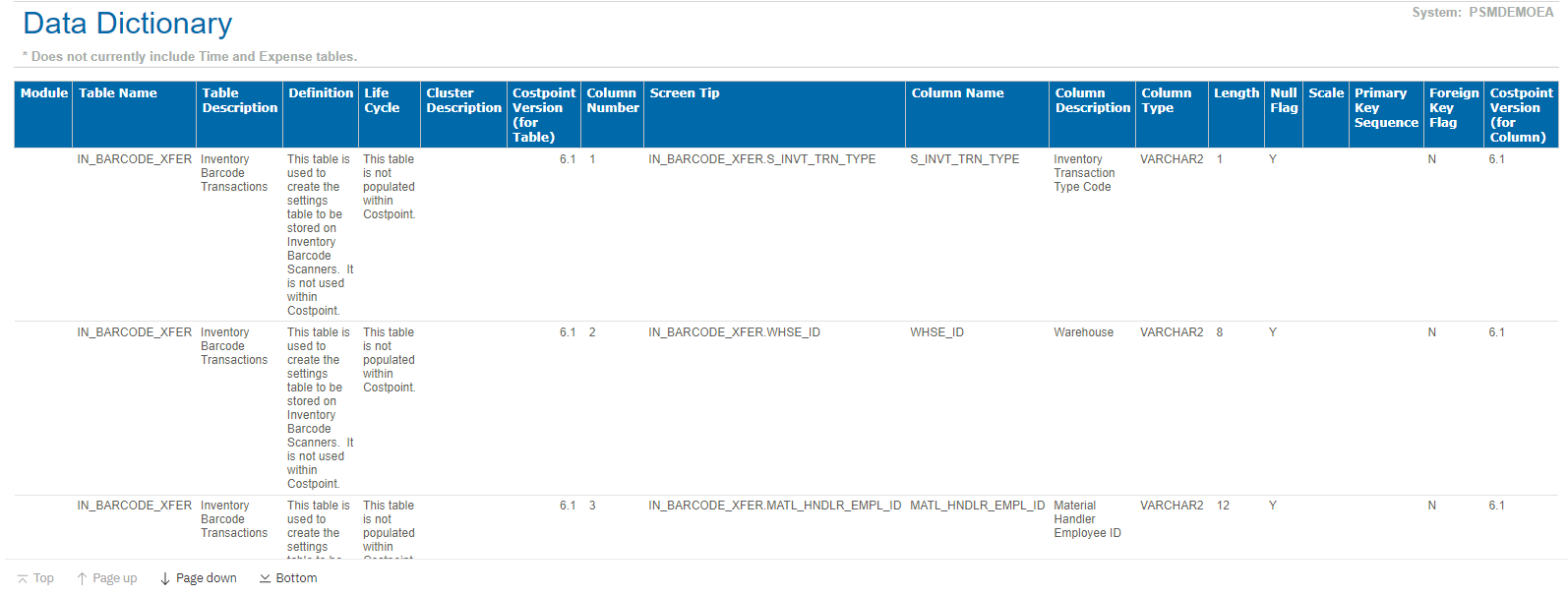 Sample Report The following image is an example of the Data Dictionary report. Parent Topic: Data Dictionary Report HomeReports & AnalyticsWelcome to Costpoint Business IntelligenceOverviewCostpoint AdministrationData Dictionary ReportSample Report