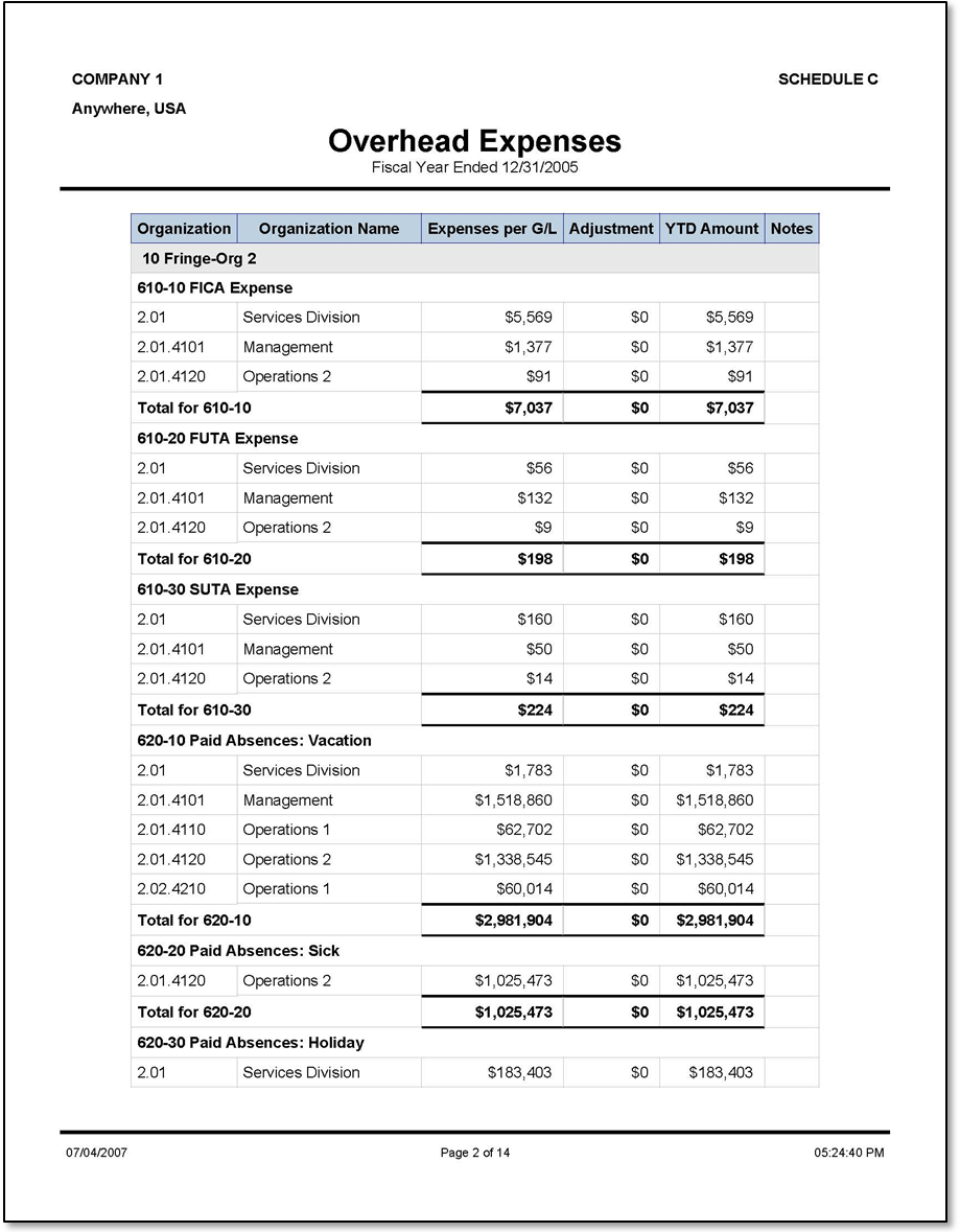 Sample Report Sample Overhead Expenses report. Parent Topic: Schedule C — Overhead Expenses HomeReports & AnalyticsWelcome to Costpoint Business IntelligenceOverviewIncurred Cost Submission ReportsSchedule C — Overhead ExpensesSample Report