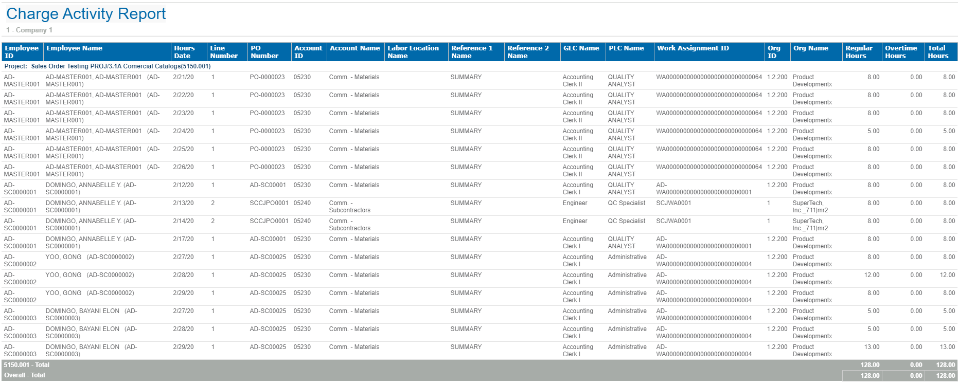 Sample Report This is a sample Charge Activity report. Parent Topic: Charge Activity Report HomeReports & AnalyticsWelcome to Costpoint Business IntelligenceOverviewTimeTime ReportsCharge Activity ReportSample Report