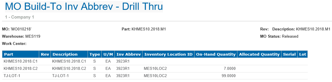 Click the Build To Invt Abbrev to view its drill thru details.