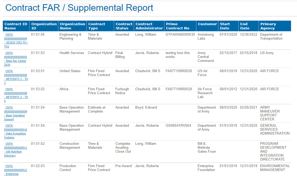 This is a sample Contract FAR/Supplement report.
