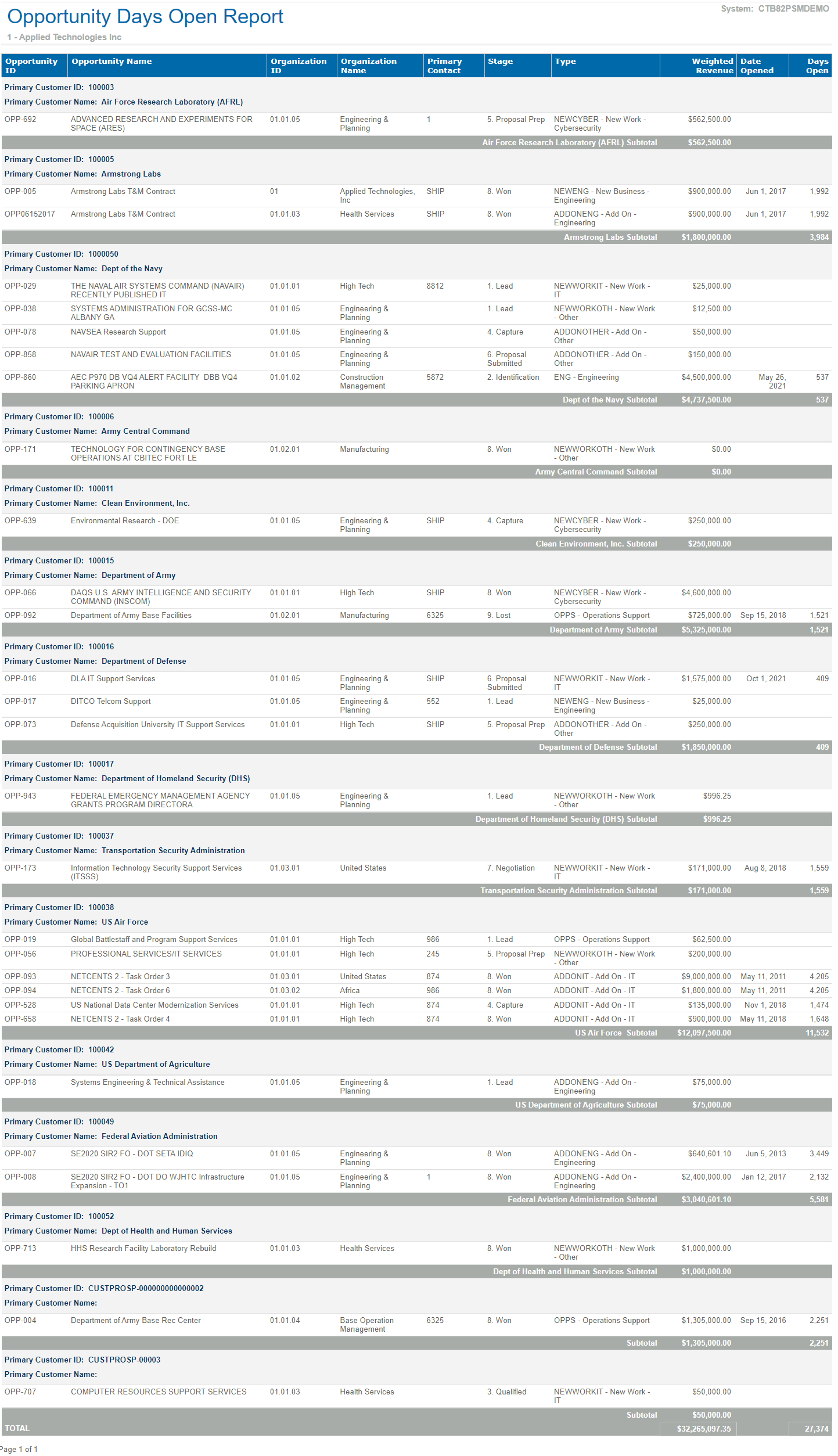 Sample Report This is a sample Opportunity Days Open report. Parent Topic: Opportunity Days Open Report HomeReports & AnalyticsWelcome to Costpoint Business IntelligenceOverviewCapture & ContractsCapture & Contracts ReportsOpportunity Days Open ReportSample Report