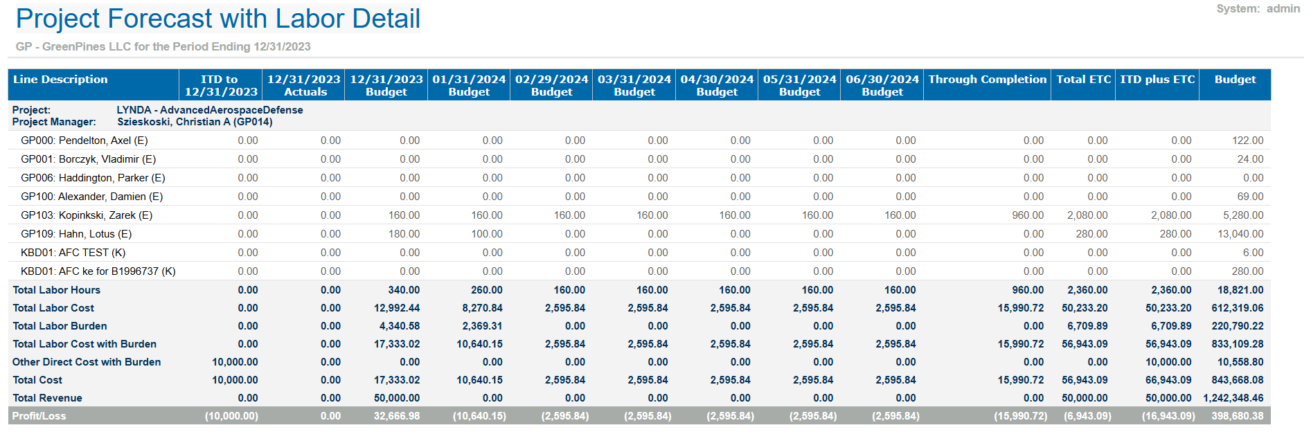 Sample Report This is a sample of the Project Forecast with Labor Detail report. Parent Topic: Project Forecast with Labor Detail HomeReports & AnalyticsWelcome to Costpoint Business IntelligenceOverviewPlanningPlanning ReportsProject Forecast with Labor DetailSample Report