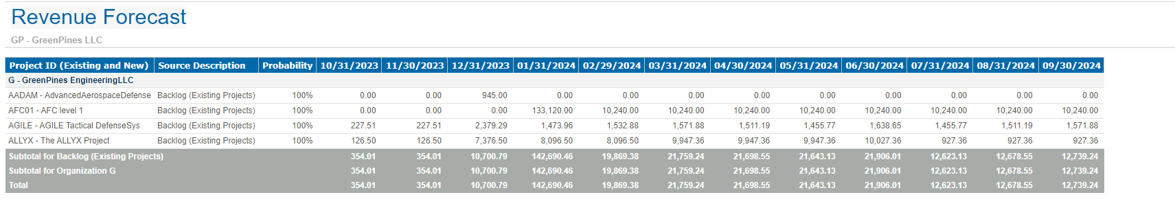 This is a sample of the Revenue Forecast report.