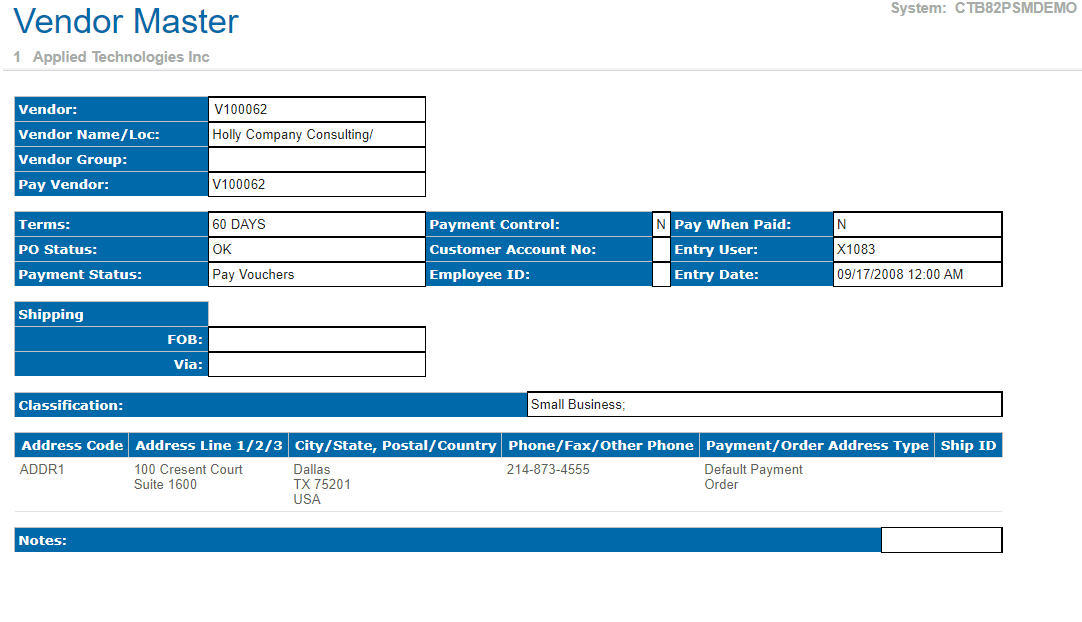 Click a vendor ID to view its Vendor Master report.