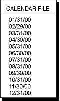From this list of dates, Cobra automatically creates calendar set 00, in which all dates generated for a fiscal calendar file are flagged and labeled:
