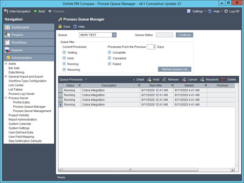 4. In the Queue Processes grid, all jobs created are displayed.
