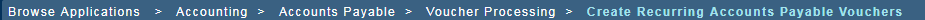 The "Bread Crumb" trail displays in the center of the Navigation Toolbar whenever you view and work in an application, so you always know your current location, as well as the path you took to get there. The Bread Crumb trail also provides convenient navigation, since you can click any item in the trail (for example, a domain, module, or application group) to go to that location. As an example, you can click Billing to go directly back to the Billing module.