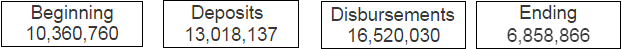 The cash summary fields display beginning cash balance, total deposits, total disbursements, and ending cash balance for all cash accounts for either the current fiscal year to date or the current fiscal period.