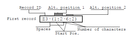 In this island, you can define a number of variables. The specified variable is used in other places in the format specification. For example, you can define that variable #3 contains the total number of records in the file. In the window Specification of Input Data Records, you can specify that variable #3 should be increased by 1 for each record. You can then inspect the contents of the variable in the end record of the file, which at that time contains the total number of records.