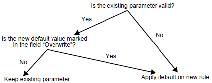 Overwrite If you mark this field, the job parameter marked as default will overwrite any other valid job parameter of the given type, when job parameters are rederived to a certain job. The functionality of this field is only relevant when rederivation of parameters gives rise to using another job parameter selection rule than the one previously used for deriving parameters to a given job, that is, if the job parameter selection rule from which job parameters are rederived to a given job is the same as the rule previously used on that job, the field “Overwrite” will not have any effect.
