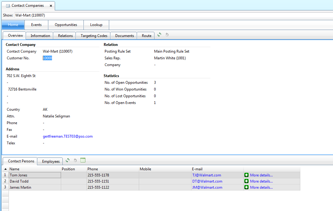 Account managers and salespeople have access to information about contact persons, projects, and opportunities for the customer.