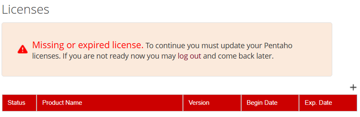 - If you do not have valid licenses the first time you log into the License page, it displays a message referencing a missing or expired license. For example: