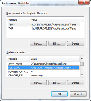 NLS_LANG, to the concatenation of these two strings separated by a dot, for example,