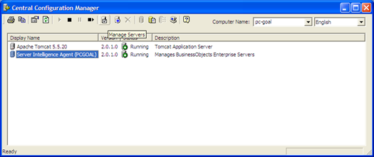 All programs » SAP Business Intelligence » SAP BusinessObjects BI platform 4 » Central Configuration Manager » Manage Servers.