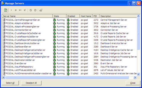 The standard BusinessObjects Enterprise installation has several services that are set up to start automatically. For this reason, the server startup is slower. However, if you do not need all of the services, the following information explains how to change the startup type on some of them, including: