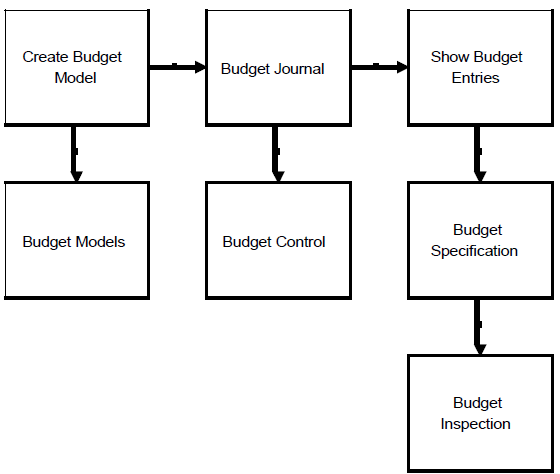 After adding Budget Control, the model of the basic budget work flow looks as in the figure above. Until now, the basic stages in a budgeting work flow have been described for a single budget model. The following section describes the handling of multiple budget models and a number of other important features of the budget module.