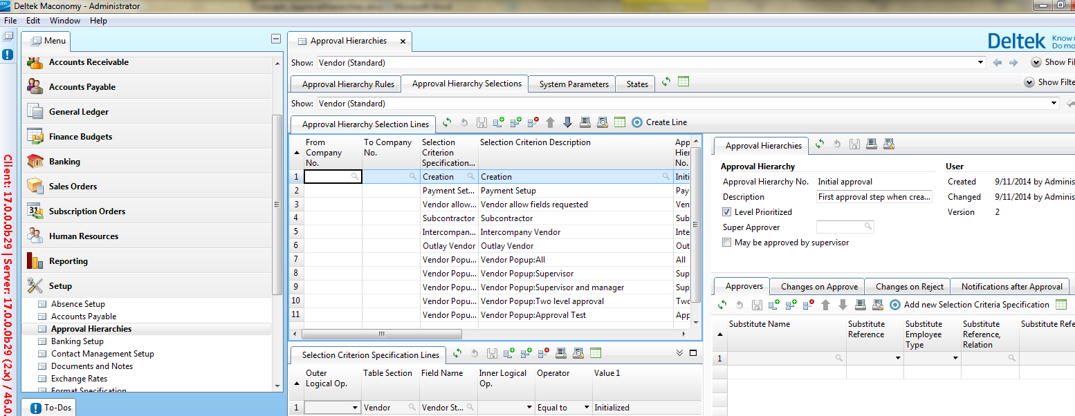 Use the Approval Hierarchy Selections tab to set up an approval hierarchy. - Accounts Payable Setup (Admin)
