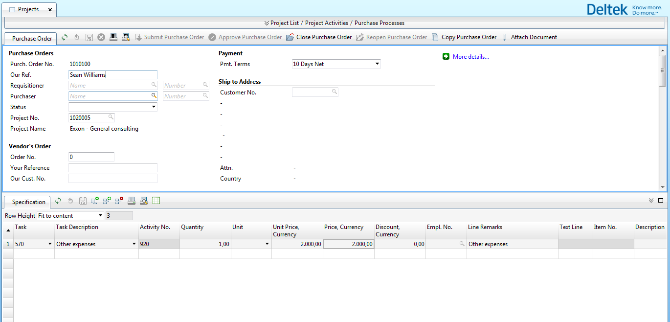 You can apply more advanced purchase processes, but we typically recommend a simple purchase process, where the PM or others can create a Purchase Order that someone else approves before the actual purchase takes place. Your approval hierarchy determines who the approver is.