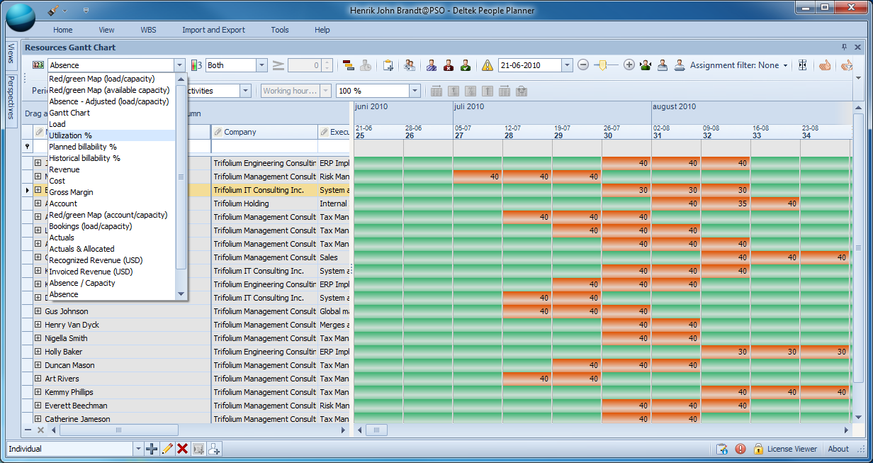 Using a simple drop-down list, you can select exactly how you want to view capacity for your personnel.