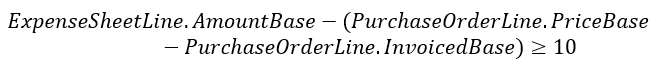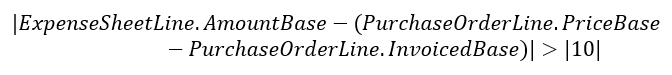 | Expense Sheet Line | Amount, Base | Outside Margin | 10 | 5% | Purchase Order Line | Price, Base | |||