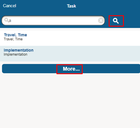 Basic search, such as searching for tasks, has been improved such that it allows you to search all server records for values that match your criteria, not only the data visible on the screen. It now works like the search functionality on the Find Job screen, wherein it has a magnifier glass icon beside the search field, which you can tap after you enter a character or characters in the search field. It also displays the first 30 search results and, if more values are available, it displays those on another page when you tap the More button.