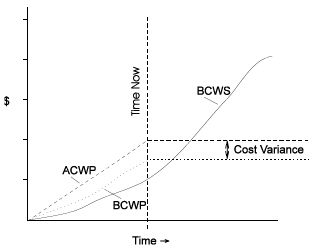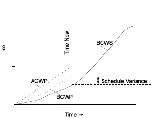 The link between the two variances is BCWP or earned value, which is used as the starting point for both calculations. Using BCWP in this manner makes it possible to measure schedule variance in terms of cost (for example, dollars) or hours. This may seem strange, but this value gives a convenient summary of the budget, actual cost, and project status in numbers that can be compared to each other. Keep in mind, however, that this approach is not a true alternative to critical path scheduling for measuring the likely impact of potential delays since the amount budgeted for particular activities may or may not accurately reflect the importance of those activities to the overall schedule of the project.