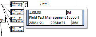 To assure that the text within activity boxes will be legible, at any zoom level where the network is shrunk to 75% or less, you may hover the cursor over the activity to see the activity drawn at normal size.