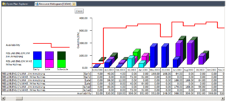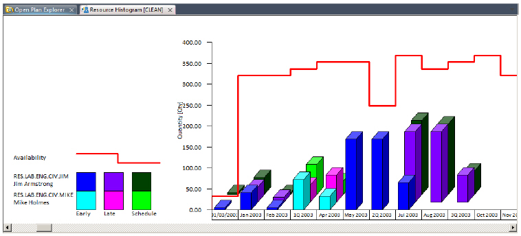 Resource histogram views are especially useful for modeling project resources since they allow you to compare resource assignments to availabilities as well as allow you to view the overall usage of a resource (or a group of resources) over the time span of the project.