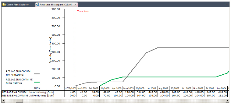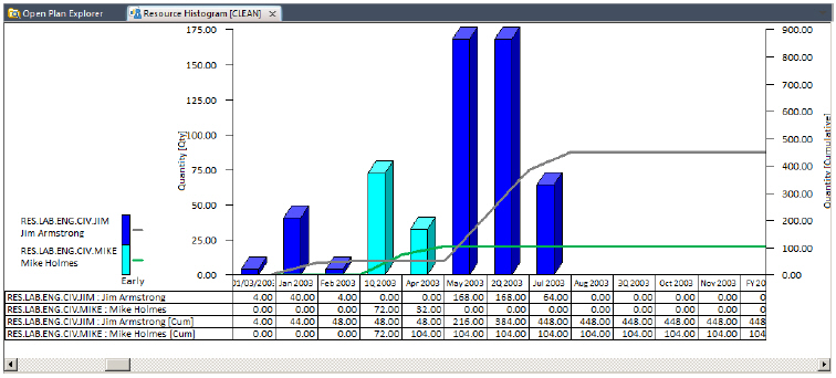 In addition to displaying information aggregated on a period-by-period basis, you can display cumulative curves in a resource histogram view. This feature is especially useful for creating S-curves for earned value and cost reporting.