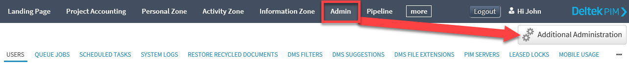 To access the Admin Console, navigate to the Admin Zone, and then click Additional Administration.
