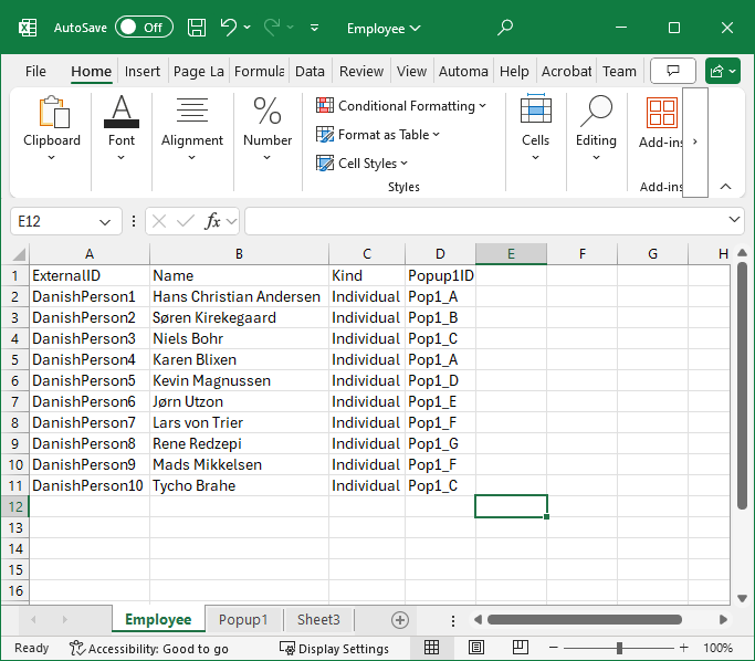 The Data.xlsx file has two tabs with data, Employee and Popup1.