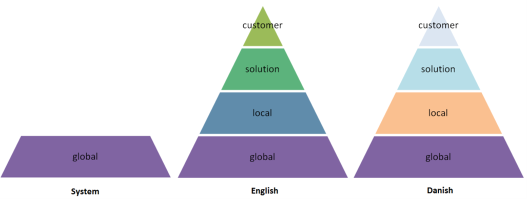 As indicated in the hierarchy shown in the preceding figure, texts are used in the following dictionary order: Custom, Solution, Local, and Global. For example, if a text exists in the customer dictionary, this takes priority over the other dictionaries, and so forth.