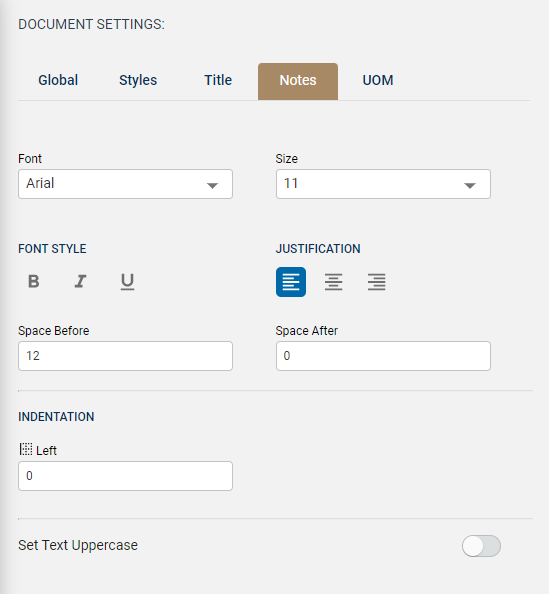 Document Settings - Notes Tab
