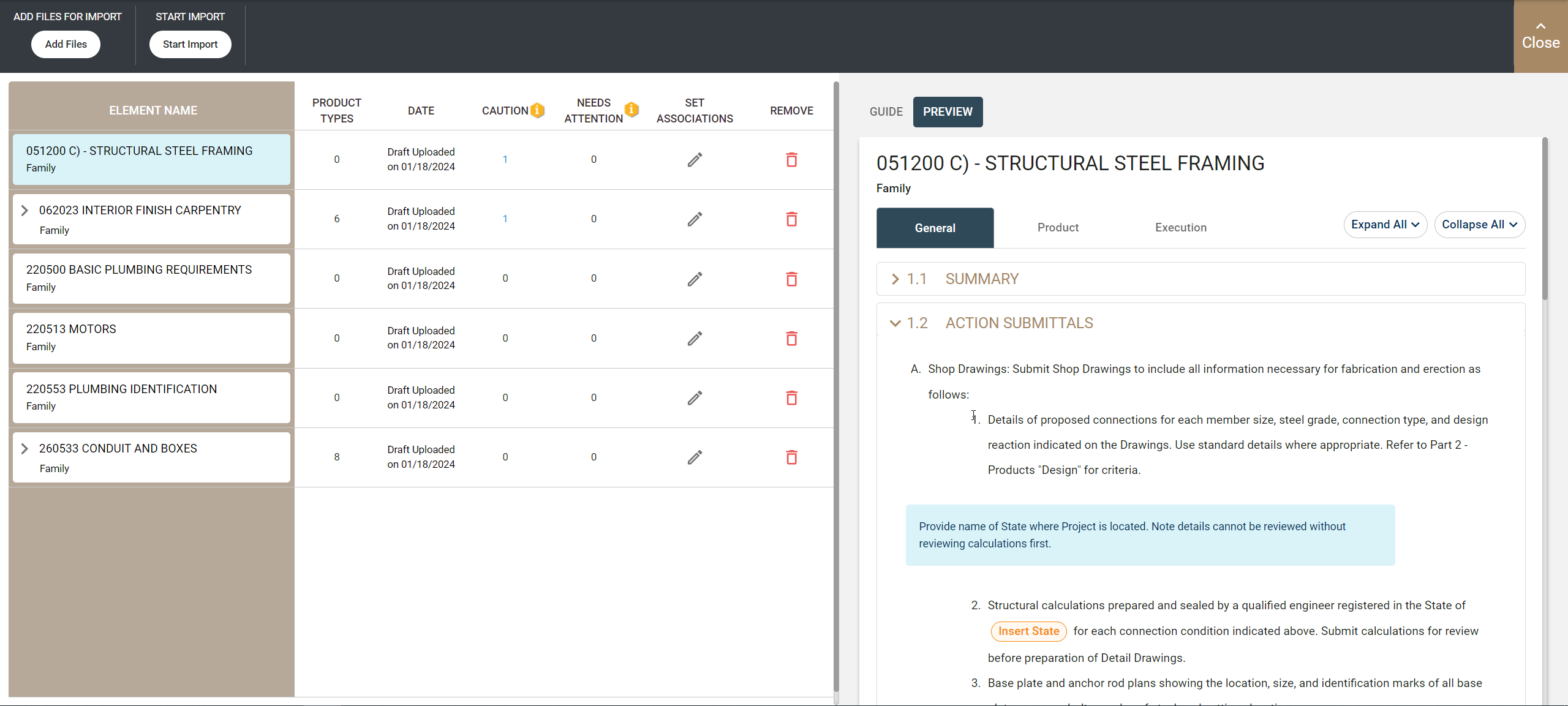 Use this tab to preview the contents of an uploaded family after its conversion for Specpoint. This enables you to verify the family's content, structure, and format before you import it into your project.