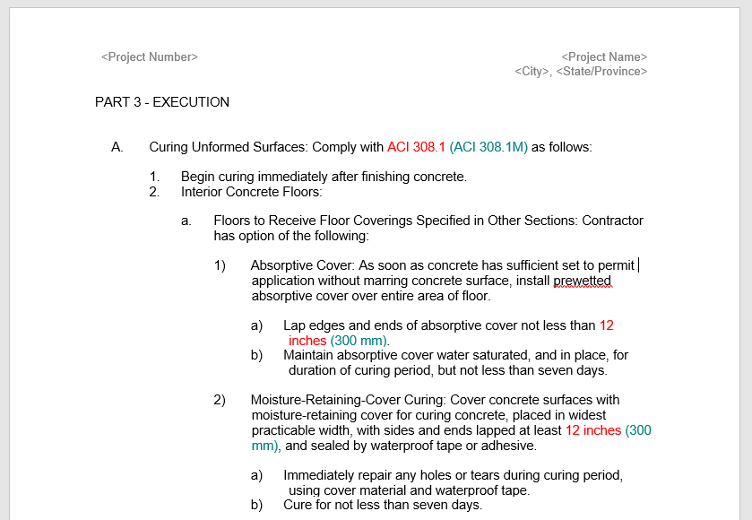 MasterSpec template. This includes, but is not limited to, sections having a three-part structure and a maximum of five paragraph levels.