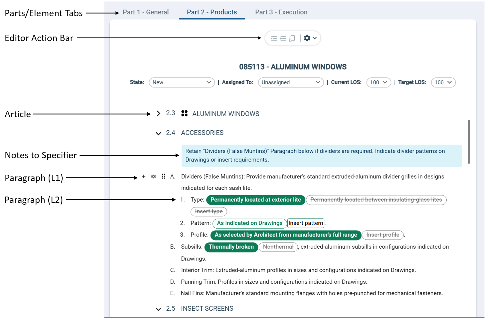 Specpoint's new workspace editor offers a streamlined, user-friendly environment for editing project elements, building on the strengths of the classic workspace's element form. Designed to feel familiar to users of contemporary document editors and text processing applications, the new workspace editor enables design professionals to work more productively and collaboratively on their project specifications.